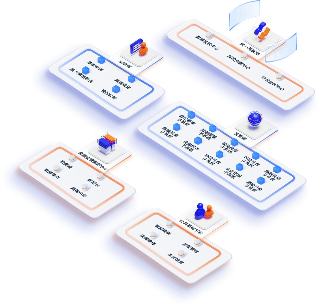 地方金融綜合監管服務平臺是專為地方金融監督管理部門打造,滿足地方金融監管工作要求的信息化系統,系統集成統一監管駕駛艙、登記備案、數據采集、監管預警、數據統計、現場檢查、協同處置、行政處罰、企業評級、金融互動、智能分析等實用功能,以金融監管數據中心為依托,形成對地方金融組織的完整監管體系鏈條。系統采用微服務分布式架構,便于根據監管業務的發展需求進行應用功能的升級擴展。